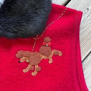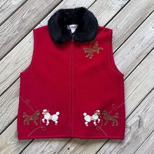 Lisa International Women's Vintage Red Poodles Vest Zip Front Size L