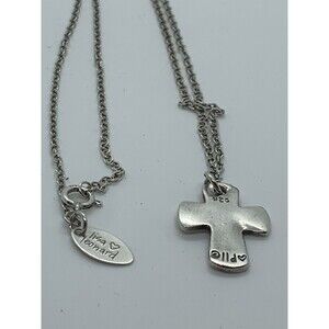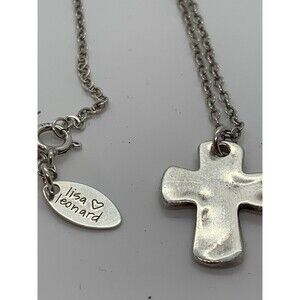 This Lisa Leonard necklace features a sterling silver cross pendant measuring 3/4" x 3/4", suspended from an 18" cable chain. "Grace For Today" and is signed by the designer. This elegant piece is ideal for all occasions and comes with a spring ring closure.