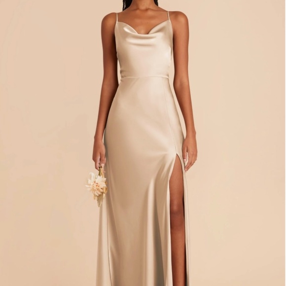 With its classic 90's cowl neck and spaghetti straps, The Lisa floor-length satin bridesmaid dress makes a statuesque statement. Worn once; dry cleaned; very good condition - selling as is