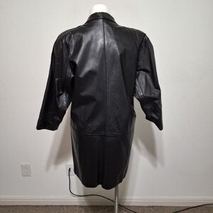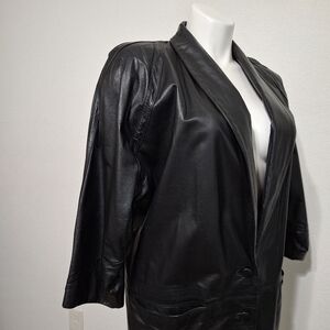 Lisa Loren Black Matrix Front Pockets 3/4 Sleeve Genuine Leather Coat Size M
