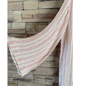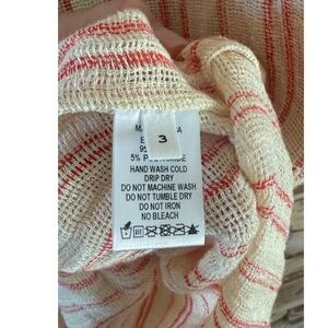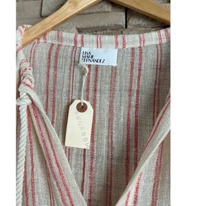 Lisa Marie Fernandez striped gauze long tunic. Drawstring neckline, side slits and long sleeves. Semi sheer natural background with tomato red stripes. 95% linen, 5% polyamide. Brand new with tags. Retail $695.