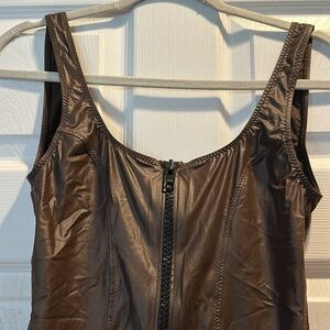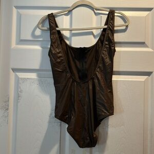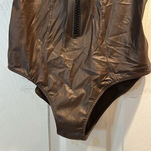 Like new! Lisa Marie Fernandez Jasmine Maillot Zip Front Brown Faux Leather One-Piece Swimsuit women’s size small. Brown faux leather, black zipper up front, thick straps, scoop neckline, low back, pull on style, unlined. Offers accepted!