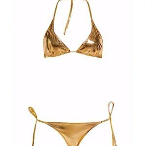 Lisa Marie Fernandez Metallic Gold Triangle Halter String Bikini NWT