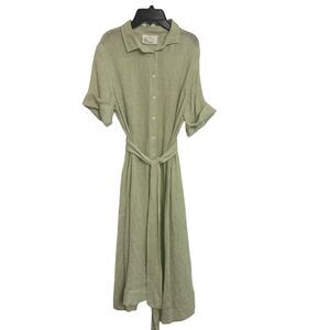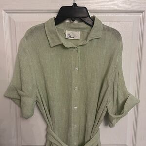 Lisa Marie Fernandez Mint Green Linen Blend Gauze Tie Waist Shirt Dress NWOT