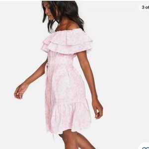 Lisa Marie Fernandez for target pink white ruffle off shoulder dress
