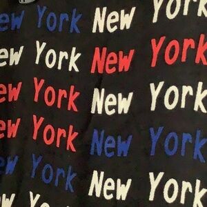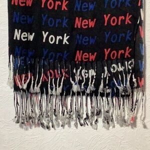 100% cashmere scarf with the writing New York all over with fringe ends