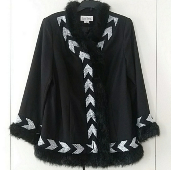 Gorgeous Lisa Rene' Blazer. Fur accents and cuffs. Measurements are in Photo. Wonderful In Good Condition