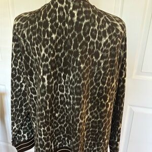 Chic animal print bomber jacket. Features a zip-up front , pockets and stylish trim. New!