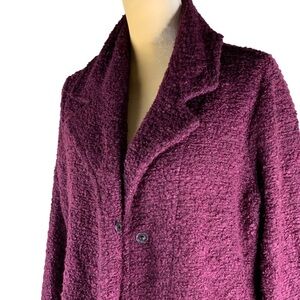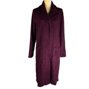 Lisa Rinna Collection Long Line Burgandy Popcorn Sweater Coat Snap Close Pockets