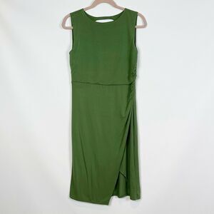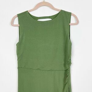 Lisa Rinna Collection Side Ruched Midi Tank Dress XS Olive Green