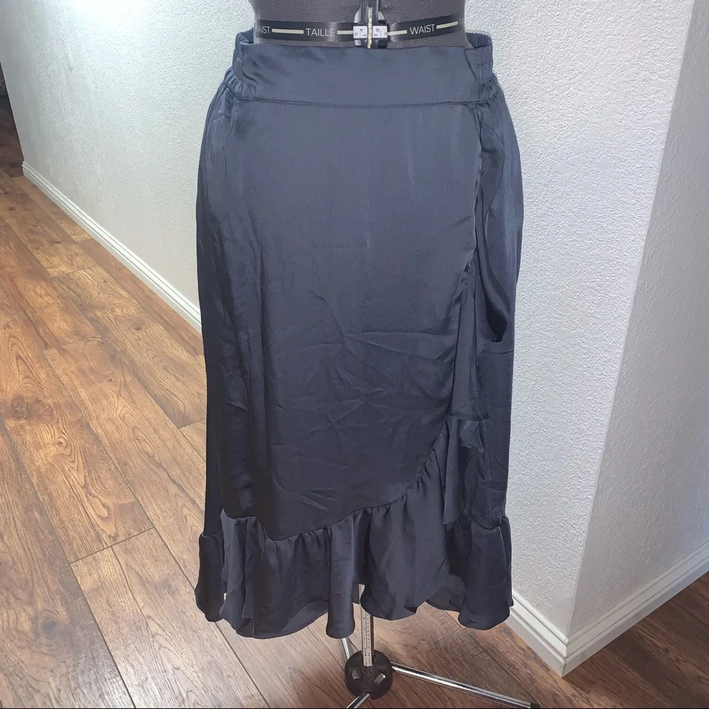 Lisa Rinna Collection dark gray ruffled midi skirt with a high-low style. Size small.