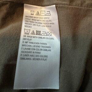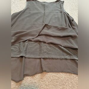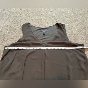 Fun, flowy, workhorse tank in a nice olive green color. Please see photos for flat lay measurements. It was hard to measure because it’s so flowy. Great tank!