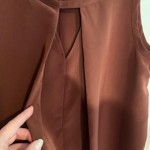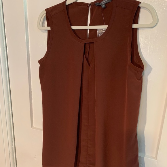 New Lisa Rinna Collection Top. 100% Polyester but item has a silk like feel. Measures 20 inches pit to pit (back), shoulder seam to bottom hem is approximately 26.5 inches. One piece that folds upon itself to create a somewhat layered look in front.