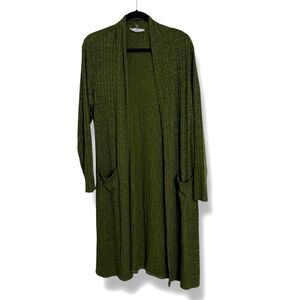 Lisa Rinna Dark Green Open Front Cardigan Duster with Pockets Women's Size MP