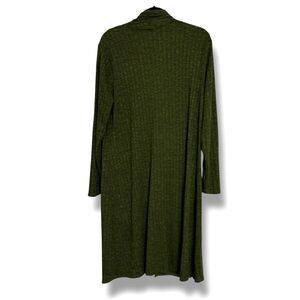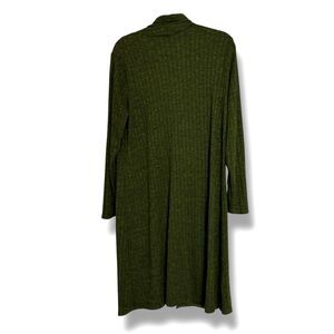 Cozy and stylish Lisa Rinna Collection open front cardigan. Designed in a rich, dark green shade, this lightweight duster cardigan features a textured rib knit fabric, two front patch pockets, and a longline silhouette that makes it perfect for layering. Its relaxed yet polished style works well over jeans, leggings, or dresses, making it a versatile piece for any wardrobe.