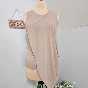 Lisa Rinna Twofer Taupe Asymmetric Chiffon Overlay Jersey Knit Sleeveless Tank Top