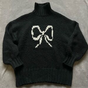 With its balloon sleeves, oversized design, and sumptuously soft mohair-like yarn, the Cece Turtleneck is a luxurious addition to any wardrobe. Its midnight hue and adorable white bow detail is ideal for pairing with a cozy hot beverage while relaxing at home, or adding a sophisticated edge to a dress.