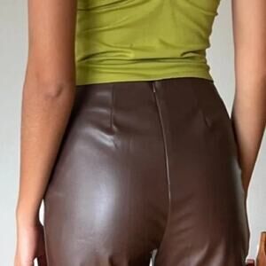 Lisa Says Gah | Luisa Brown Faux Leather Pants High Rise Straight Leg M/L