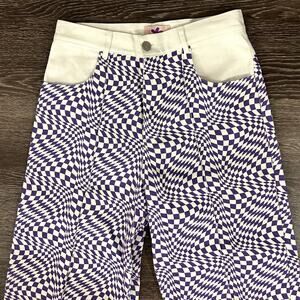 Lisa Says Gah Robyn Checkered Wide Leg Jeans Purple Warp Print Size 29