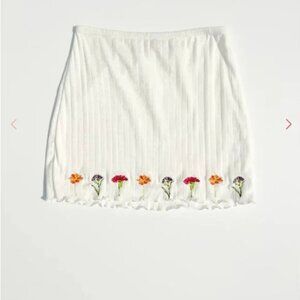 Adorable "Rose Mini" skirt in white with multi-colored floral embroideries ("Milk Bouquet"). From the "Wildflowers Collection".