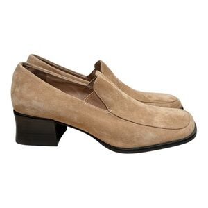 Lisa Says Gah Suede Leather Block Heeled Loafers Size 9