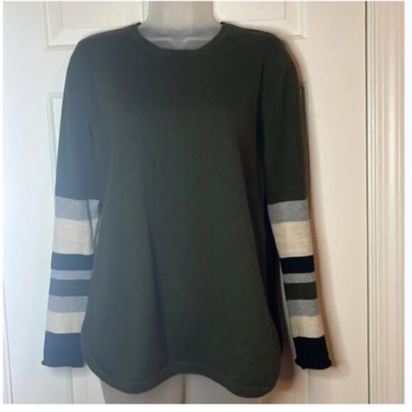 featuring bold striped sleeves