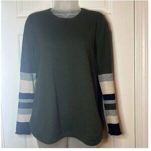 Crewneck, dropped shoulders, long striped sleeves