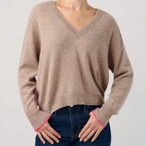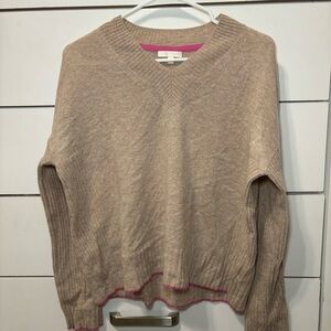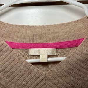 Lisa Todd Cashmere / Wool Tan & Pink V Neck Sweater