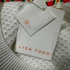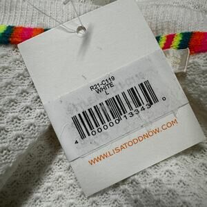 Lisa Todd Lover Embroidered Rainbow Heart Sweater White Women's Size L NWT
