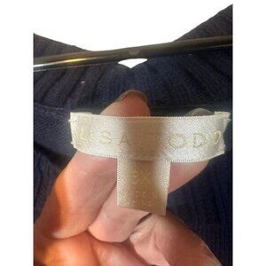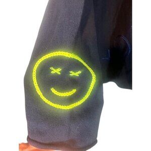 Lisa Todd Navy Blue Smiley Face Heart Cotton Pullover Knit Sweater Women Sz 3X