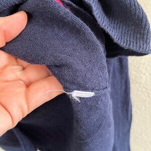 Great preloved condition Lisa Todd V-Neck Navy Blue Pull Over Sweater Sequin Pink Elbow Patches