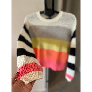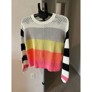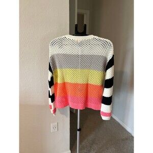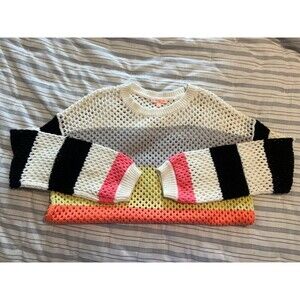 Lisa Todd Sweater Stripe Shock Open Stitch Knit Color-block Sweater
