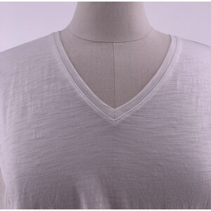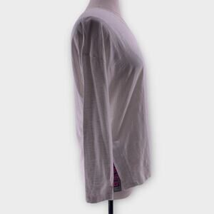 Lisa Todd White Embroidered "Blah Blah" Long Sleeve V-Neck Cotton T-Shirt Top Women's Small