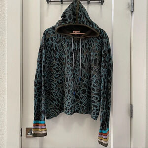 Lisa Todd Women's Blue Long Sleeve Animal-Print Hoodie Sweater Size L