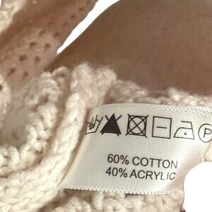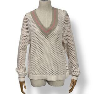 Lisa Todd Women's Size S Open Knit V-Neck Varsity Sweater Cream Beige Pullover