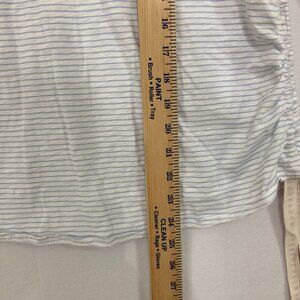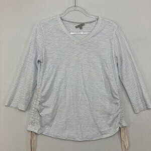 Lisa Todd size Small Blue White Striped Ruched Side Cotton Stretch V Neck Top