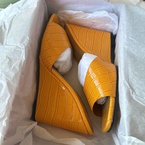 Lisa Vicky Adore Yellow Gold Faux Crocodile Snake Platform Wedges 7