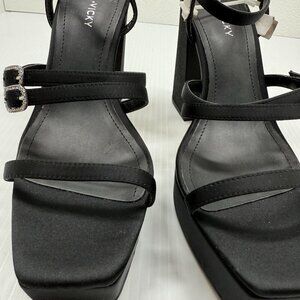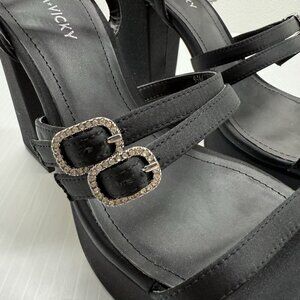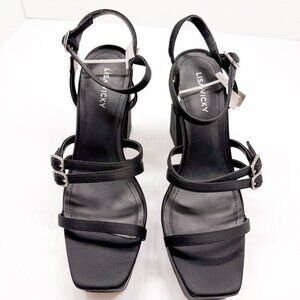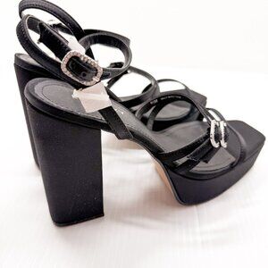 Lisa Vicky Babe-V Heels 9.5 Black Satin Strappy Platform Sandals Chunky Heel NIB