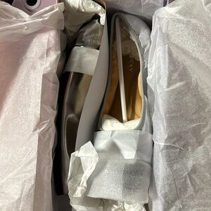 Lisa Vicky Bliss 2 Metallic Silver Black Studded Ballet Flat Slip Ons
