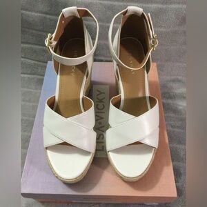Lisa Vicky Gemi White Platform Espadrille Wedges Size 9M