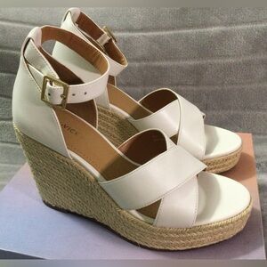 Lisa Vicky Gemi White Platform Espadrille Wedges Size 9M