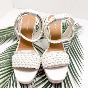 Lisa Vicky Jewel-V Shoes Womens Size 9 White Weave Platform Block Heel Sandals PU