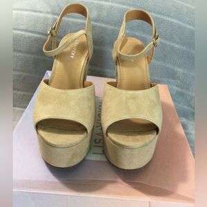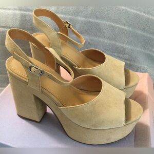 Lisa Vicky Jig Camel Kid Suede Platform Block Heeled Sandals Size 8.5