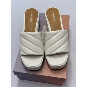 These sandals are brand new and come in a size 9M. They are perfect for any season, whether it be winter, summer, fall, or spring. The slip-on closure makes them easy to wear, and the solid pattern and white exterior color make them a stylish addition to any wardrobe.