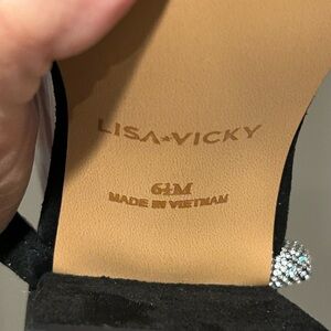Lisa Vicky Mood Microsuede Block Heel Slide Sandal Black Rhinestone Strap Sz 6.5