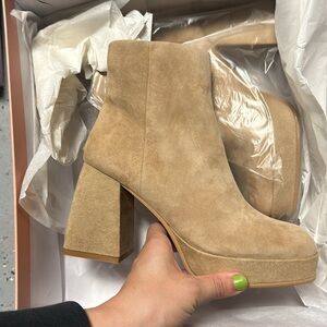 Lisa Vicky Nifty Heeled Bootie Side Zip Tan Camel Brown Suede 7