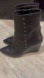 Lisa Vicky Sassy Black Studded Pointed Toe Wedge Bootie, Size 7