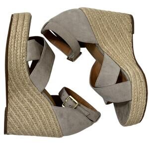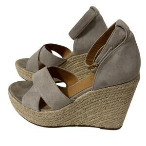 Lisa Vicky Grey Suede Gemi Platform Wedge Sandal size 7