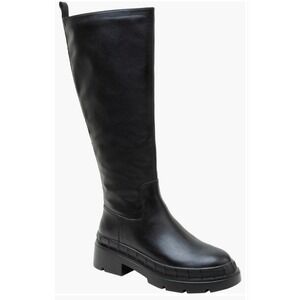 Lisa Vicky Water Resistant Black Leather Knee High Boots Lug Sole Chunky 7M NIB