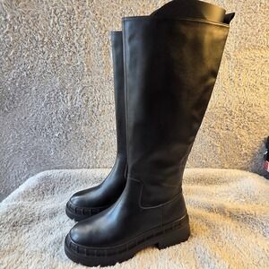 Keywords: knee high boots, black boots, leather boots, platform boots, lug sole boots, chunky boots, tall boots, size 7, womens boots, fashion boots, stylish boots, black leather boots, new boots